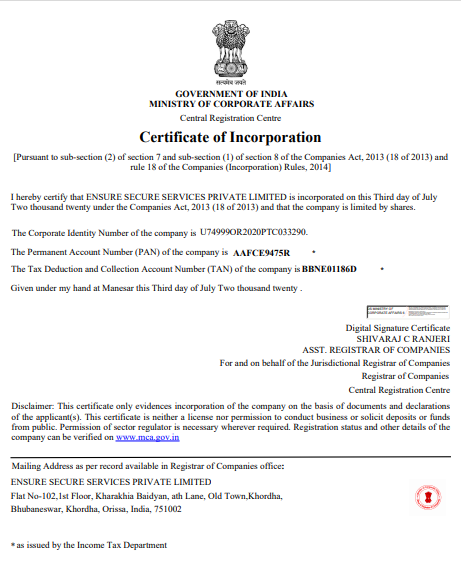 © All Rights Reserved By Ensure Secure Services (P) Ltd.